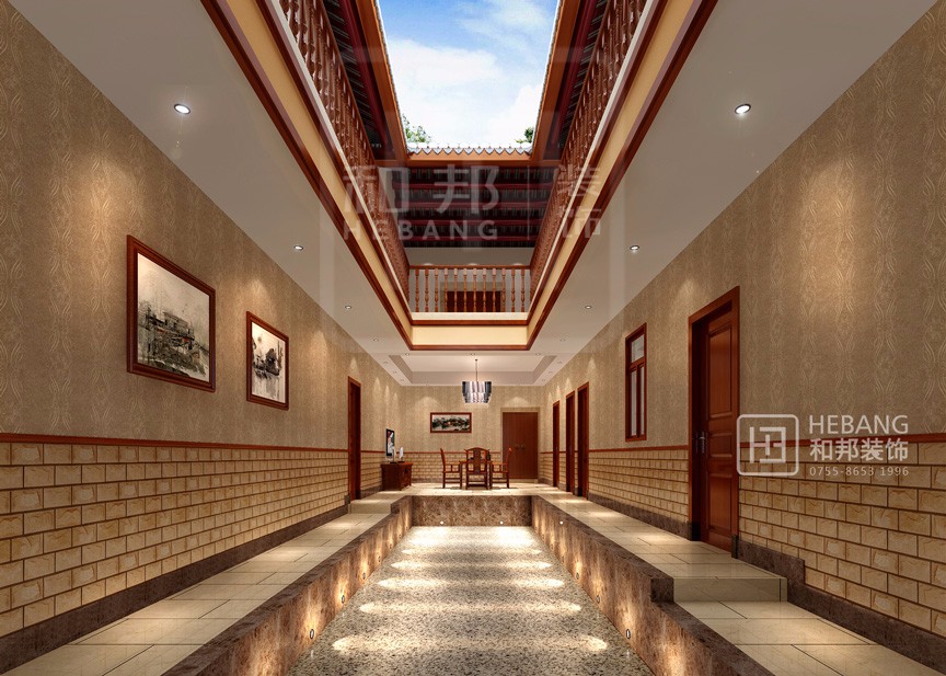 梅州客家大宅在設計時秉承了傳統客家建筑裝修的傳統,十分注重風水和采光在空間中的合理安排。