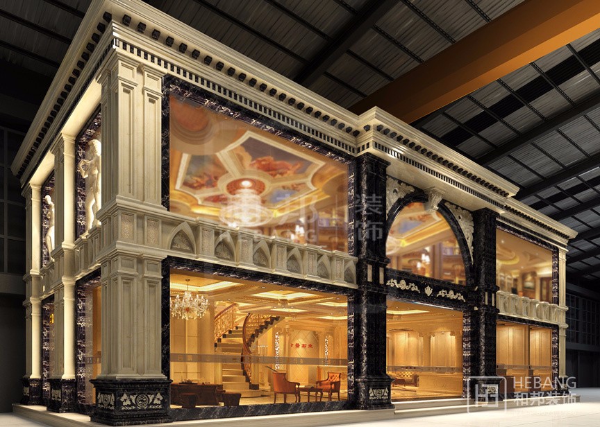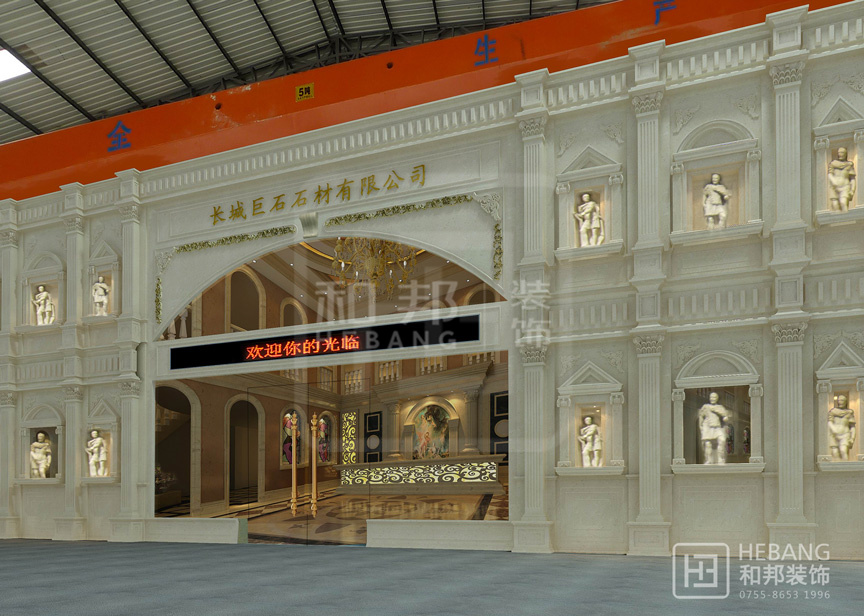整個展廳全部使用石材來裝飾:從外到內無不使用石材來設計,很好地體現了展館的主題;同時,整個展館多使用圓形拱門非常具有設計感。